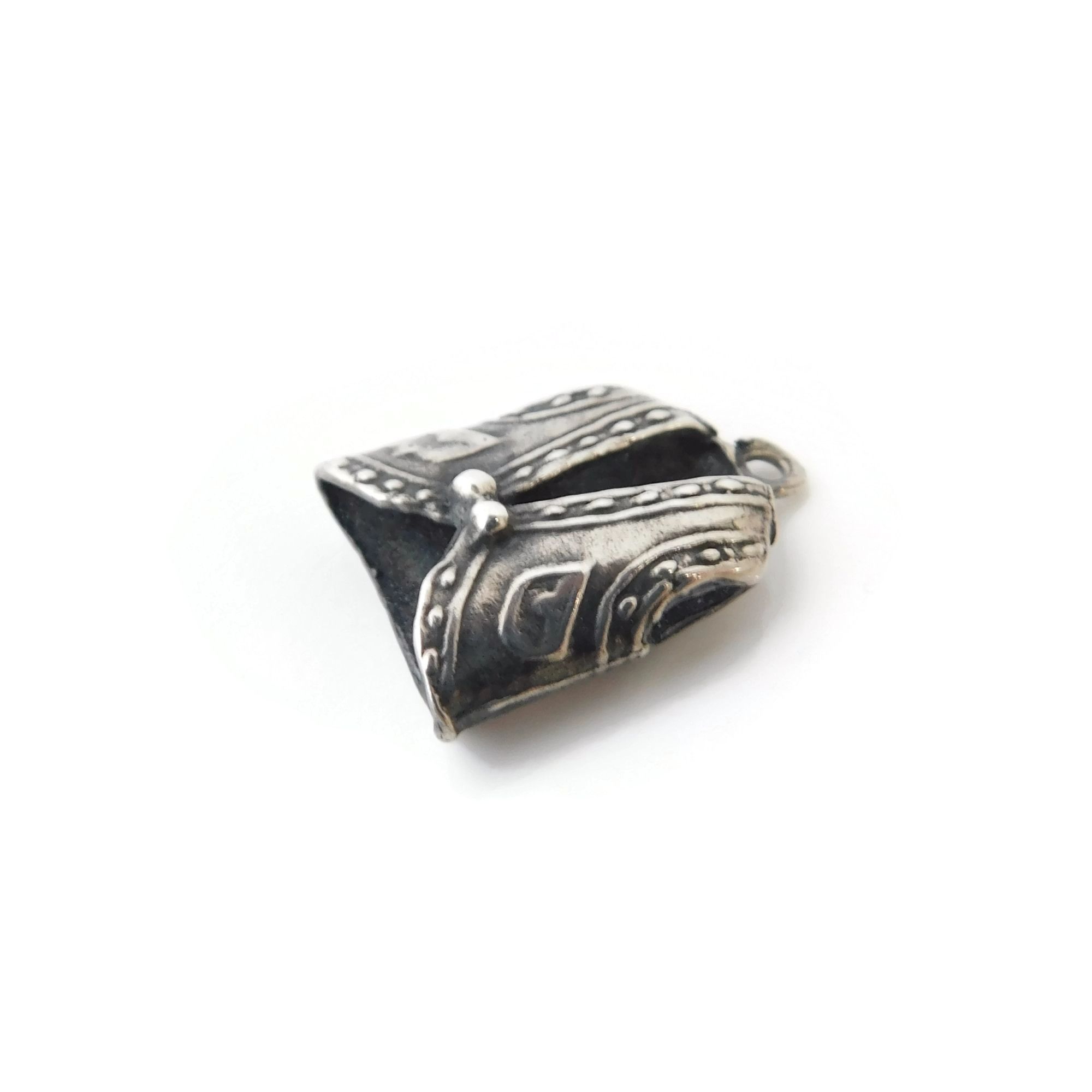 The charm is 3/4 inch in length. It is in excellent condition with slight patina due to age.