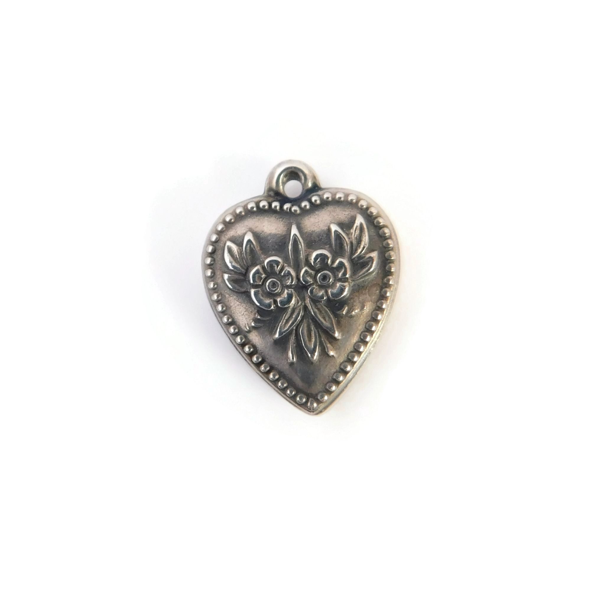 Vintage Sterling Silver Puffy Heart Charm, Forget Me Not